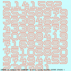 Een behang voor de liefhebbers. Pi is een transcendent getal en de fascinatie van vele wiskundigen. Wij bieden het getal Pi in 10.000 cijfers achter de komma. De afdruk van enkel cijfers geeft een mooi regelmatig patroon. En mocht je willen uitrekenen hoeveel marsepein je nodig hebt rondom je Pie, dan kan je dat nu exact berekenen. ;)